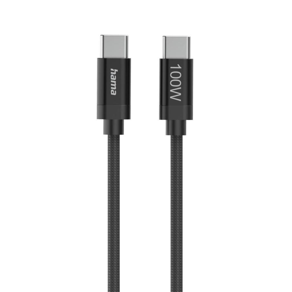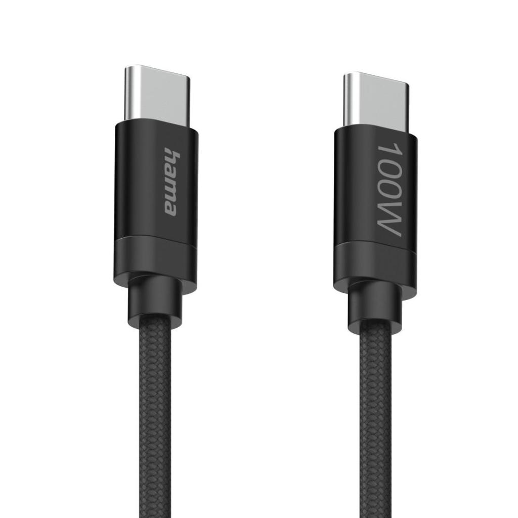 HAMA Кабел за зареждане, "Fabric", USB-C - USB-C, 100 W, 1.5 m, Nylon, black