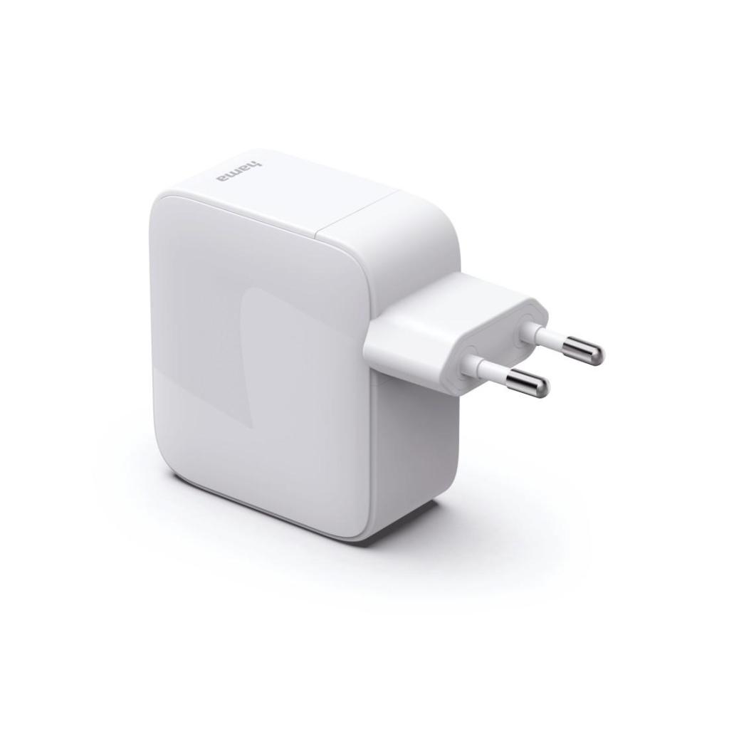 HAMA Бързо зарядно, 65W, GaN, 2x USB-C, с разтегателен кабел 0.7м.